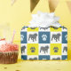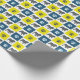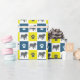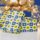 Papier Cadeau Chien-taureau et silhouette paw Grille jaune&bleu