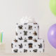 Ce papier d'emballage délicieux, bon pour n'importe quelle occasion, est couvert de bergers allemands, de carlins, de bouledogues anglais, de terriers de Boston, de pitbulls, et de rottweilers qui sont sûrs de mettre un sourire sur votre visage.
