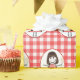 Jolie figurine en bâton avec cheveux et marguerites sur rouge et blanc en vichy arrière - plan. Elle porte des baskets, en vichy robe et un collier de perles.