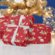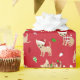 De mignons chihuahuas de Noël dans des tenues de vacances festives. Chapeaux de Père Noël, bois, pulls, ornements et sucres de canne enveloppant du papier.