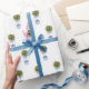 Chinoiserie Poterie Orange Topiaire Bleu Blanc Papier Cadeau Blanc.