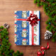 Papier Cadeau Chouettes en Motif de Noël à Santa Hats, Bleu