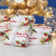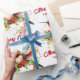 Amusez vos invités avec ce design de papier d'emballage de vacances charmant. Il présente un magnifique colibri au thème de Noël aquarelle entouré d'un bouquet de fleurs d'hiver sur un arrière - plan blanc. Le design comporte une typographie rouge personnalisée.