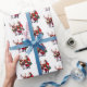Wrapping paper is shown in a festive Santa and reindeer print.