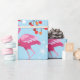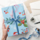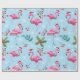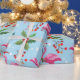 Papier Cadeau Christmas flamingos and holly on blue pattern