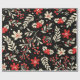 Elegant red and white Christmas foliage design that seamlessly repeats on a sleek black background. Perfect for creating a festive and sophisticated holiday wrapping paper.