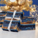 Beautiful wrapping paper with pretty Train all decked out for Christmas, driving through the snow, smoke billowing from the stack. Beautiful gold lights shine brightly on the trees.