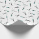 Papier d'emballage blanc avec un motif des peignes et des ciseaux en noir et turquoise.