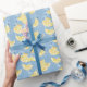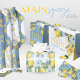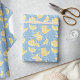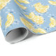 Papier Cadeau Citrons tranchés et fleurs à l'aquarelle bleue