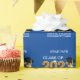 Classe de Graduation Elégante et moderne de 2023 sur le bleu personnalisable pour correspondre aux couleurs de l'école. Le design présente un design en lettrage métallique 3d pour l'année 2023 décoré d'une casquette noire traditionnelle.