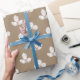 Un papier d'emballage Kraft rustique avec un motif de trèfle à trois feuilles blanches sur un arrière - plan couleur Kraft.