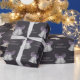 Nous avons ici un papier d'emballage qui présente des cloches argentées et les mots Joyeux Noël sur un arrière - plan de couleur violette profonde. Ce papier est disponible en plusieurs tailles et correspond à d'autres papiers d'emballage, papiers de tissus, sacs cadeaux et une carte de voeux. Ceci est sûr de faire un complément parfait à vos cadeaux cette saison de vacances.