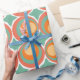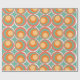Ce papier d'emballage a un design moderne du milieu du siècle de cercles concentriques dans les couleurs des années 1970 avec des étoiles entre chaque groupe.