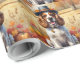 Un tableau aquarelle d'un chien gai assis au milieu d'un tas de feuilles d'automne vibrantes, entouré de minuscules citrouilles et de glands épars. Le chien porte un petit casquette pèlerin et des poutres de joie, capturant l'esprit de Thanksgiving. Dans l'arrière - plan, les champs de moissons et les arbres dorés créent une ambiance campagnarde paisible. Des textures douces et des tons d'automne chauds et feutrés confèrent à la scène une atmosphère cosy et nostalgique parfaite pour célébrer la beauté de la saison.