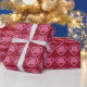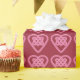 Un simple emballage colossal rose, contre un arrière - plan rouge.