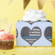 Amincissez la ligne bleue papier d'emballage de coeur avec un drapeau.