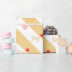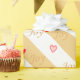 Joy coeurs sur papier d'emballage cadeau rayé doré et blanc en diagonale.