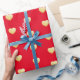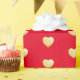 Golden Faux Foil Hearts Motif sur Red arrière - plan. Élégant et élégant, ce papier cadeau est imprimé avec du faux papier dans un motif extensible. Convient aux Mariages, aux anniversaires, aux fêtes et aux cadeaux d'amour. Coeurs d'or sur papier d'emballage rouge.