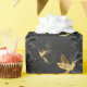Colibris de bijoux en noir et or sur arrière - plan gris décoré de plantes. Bijoux. Oiseau doré. Oiseau d'or.