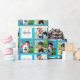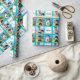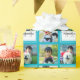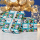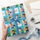 Aqua turquoise bleu turquoise arrière - plan avec votre prénom ou votre nom de famille, et monogramme initial à une seule lettre, ajoutez vos 3 photos numériques préférées à ce collage photo-montage personnalisé unique et personnalisé enveloppement cadeau monogrammed ! Créez votre propre cadeau photo personnalisé à l'aide de photos de famille, de portraits pour enfants ou même d'images.