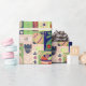 Beau papier d'emballage coloré qui correspond à certaines des couleurs du design principal. Ce papier d'emballage mignon, fantaisiste et cool aux couleurs orange, bleu, vert et saumon-rose présente des carrés et des quadrants irréguliers avec de jolies peintures décoratives de lapins, oeufs, fleurs et paniers d'oeufs. Amusez-vous à envelopper vos cadeaux de Pâques avec ce beau papier d'emballage.