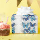 Composition verticale de papillons morpho réalistes, bleus et blancs sur arrière - plan texturé gris. Papillon bleu Morpho.