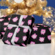 Papier d'emballage à motif de boîte à monnaie adorable. Biges roses mignonnes à motifs sur un arrière - plan noir. Parfait pour les comptables, les financiers et les employés des banques.