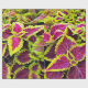 Des feuilles colorés et vibrants présentent un contraste saisissant entre magenta profond et vert vif, créant un impact visuel vivant et frappant