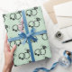 "Conception classique de bagues de mariage papier d'emballage vert clair seamless" présente des anneaux de mariage entrelacés, symbolisant l'unité et l'engagement, idéal pour emballer des cadeaux de douche de mariée ou de mariage avec une touche romantique.