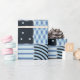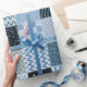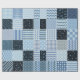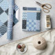 Conception de surfaces composées. Motif en patchwork sans couture de carrés cousus avec différents ornements géométriques. Impression textile en bleu.