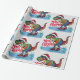 Papier Cadeau Cool amusant T-rex Dinosaur Patinage Noël Abstrait