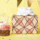 Motif géométrique atomique de ` moderne de la moitié du siècle" des anneaux elliptiques concentriques - brun chocolat, beiges et du corail sur un arrière - plan en pastel doux de pêche