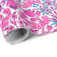 Papier d'emballage dans un motif vintage de William Morris des jacinthes, tulipes et feuille, aux nuances de fuchsia et doucement du rose, accentuées avec bleu-foncé et la turquoise, sur un arrière - plan blanc