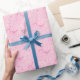 Coquette et papier d'emballage fantaisie avec illustration dessinée à la main des arcs et des coeurs roses.