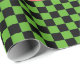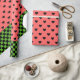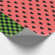 Le papier d'emballage Whimsical présente des motifs de coeurs rose pastèque et noir avec bordure inférieure en damier vert foncé.