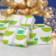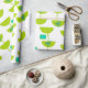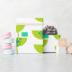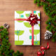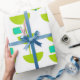 Ce papier d'emballage a un design moderne du milieu du siècle de demi-cercles verts qui ressemblent à des tasses enfilées avec des starbursts et des rectangles turquoise.