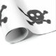 Un crâne en feutre noir avec des points blancs. Tout le design numérique.