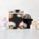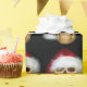 Le crâne humain avec un casquette de Père Noël et un filtre abstrait de fractalius a appliqué le papier d'emballage de Noël légèrement macabre