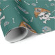 Papier Cadeau crâne de pirate et arêtes de croix vert
