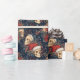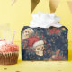 Un design gothique festif de noël avec des crânes en chapeaux de Santa avec des décorations florales traditionnelles de noël sur un arrière - plan du ciel sombre.