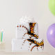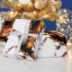 Un design artistique abstrait d'un dragon volant mythique en rouge, or et noir, laissant également une image de leur trajectoire de vol.