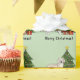 L'illustration originale de Destei d'un mignon manteau anglais couleur crème Golden Retriever race dog. Le chien est debout près d'un sapin de Noël festif orné d'ornements rouges et jaunes, d'une guirlande de perles blanches et d'une étoile jaune posée sur le sommet de l'arbre. Il y a aussi deux cadeaux emballés par l'arbre et il y a une zone de texte personnalisable qui se lit maintenant : "Joyeux Noël !". La couleur arrière - plan est vert clair.