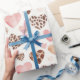 Papier Cadeau Crème Brown rose Fille Coeurs animaux léopard