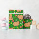 Papier Cadeau Croquis Capybara avec fleurs de printemps sur vert