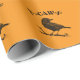 Il s'agit d'une illustration monochromatique de fabrication professionnelle, avec un corbeau perché sur une branche d'arbre, rendu avec une texture mi-teinte distincte pour évoquer une esthétique vintage. Le texte audacieux et stylisé "F-CAW-F", qui est placé en bonne place au-dessus de l'oiseau, offre une touche humoristique qui complète la veine gothique et potentiellement éffrayante ou Halloween du corbeau. La composition globale mêle des éléments de tatouage vintages et foncés avec un design graphique rétro.