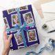 Personalize this cute vintage stamp family of four portraits wrapping paper for Christmas