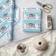 Ce beau papier d'emballage de vacances immobilier personnalisé est parfait pour une entreprise immobilière située au nord. Un beau dessin d'une maison bordée de neige et de fumée sortant de la cheminée à côté des arbres verts. Un courtier peut garder Happy Holidays en écriture cursive ou customiser avec ses propres Joyeuses Fêtes.