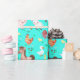 Papier Cadeau Cute Farm Animaux Barnyard Turquoise