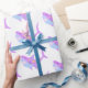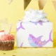 Ce papier d'emballage amusant présente d'adorables dessins de boho d'un requin souriant de style kawaii en lavande violet et bleu aqua.