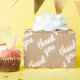 Joli emballage cadeau avec élégante lettrage à la main style calligraphie de Merci blanc sur un arrière - plan simple de papier kraft faux brun clair .